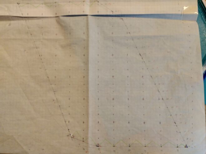 今回作成したぶどう棚の設計図です。ほぼ平行四辺形の土地にぶどう棚を建てています。