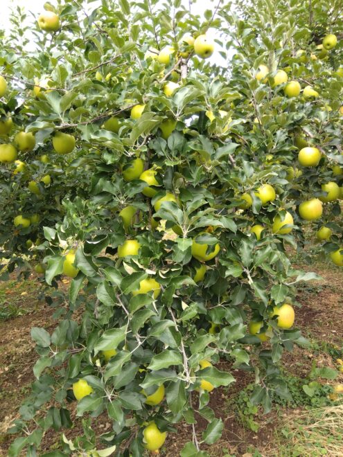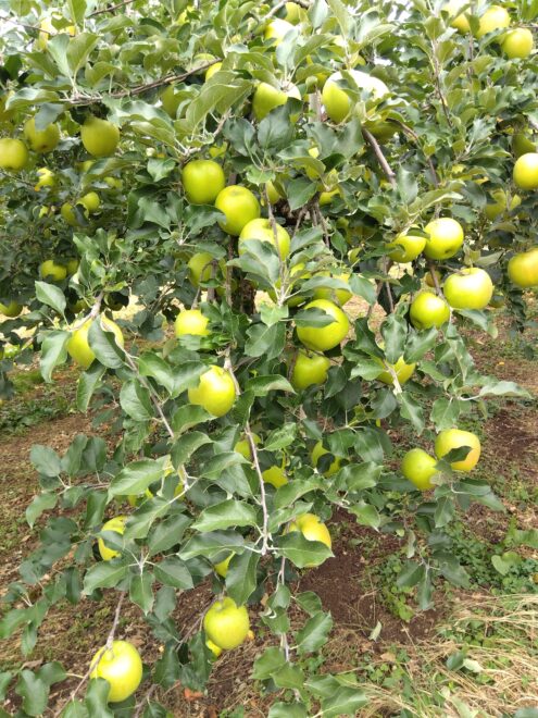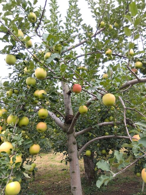 長々と説明しましたが上記の違いから生産現場では青系品種のりんごが増えています。忙しい出荷時期に作業するのは一苦労。できればその作業時間を他に回したいですからね。そのため青系品種の品種開発も進んでおり、「ぐんま名月」や「はるか」など蜜も入りでとっても美味しいです。また葉とらず栽培も同時に増えつつあります。理解を示して頂けるお店も増えているようで真っ赤なりんごと変わらない価格で取引するみたいです。こういった状況から近い将来には全体が真っ赤に染まった綺麗なりんごは贈答用のみの生産になるかもしれません。