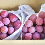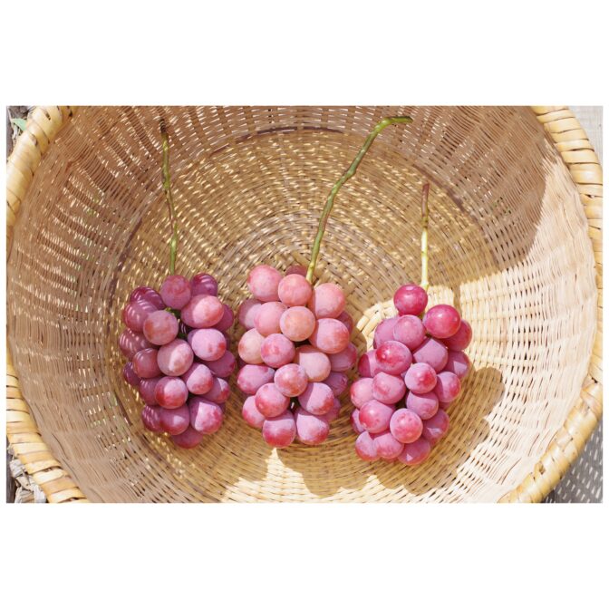果肉がしっかりしていて歯切れがよく、糖度が高くて酸味がおだやかです。甘くみずみずしいことが特徴となっています。果実の表面に白い粉のような物がかかっている場合がありますがこれは鮮度保持のため果実から自然に分泌されている天然物質であり、人体には無害です。新鮮な証です。